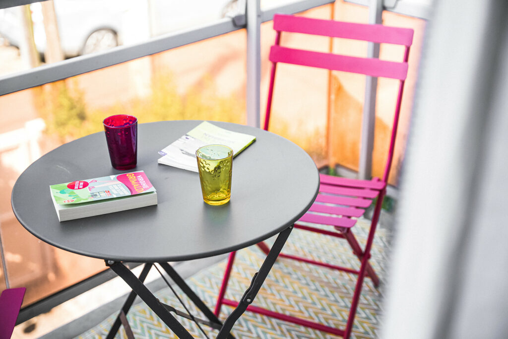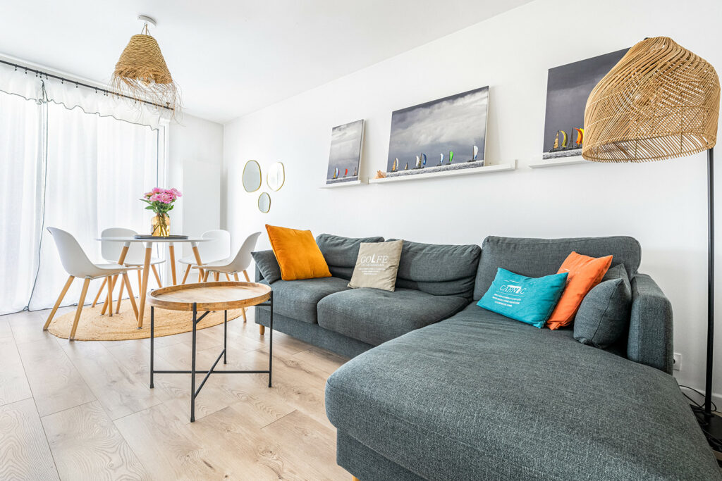 - Salon lumineux donnant sur une terrasse orientée ouest — parfaite pour se détendre au soleil avec table et chaises.